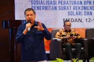 “Aturan ini menjadi pedoman bagi stakeholder dalam pelaksanaan di lapangan, yaitu Peraturan BPH Migas Nomor 2 tahun 2023 tentang Penerbitan Surat Rekomendasi Untuk Pembelian JBT dan JBKP,” terang Kepala BPH Migas Erika Retnowati, saat membuka Forum Komunikasi Stakeholder bertajuk Sosialisasi Peraturan BPH Nomor 2 Tahun 2023, di Kota Medan, Sumatera Utara, Jumat (13/10/23).